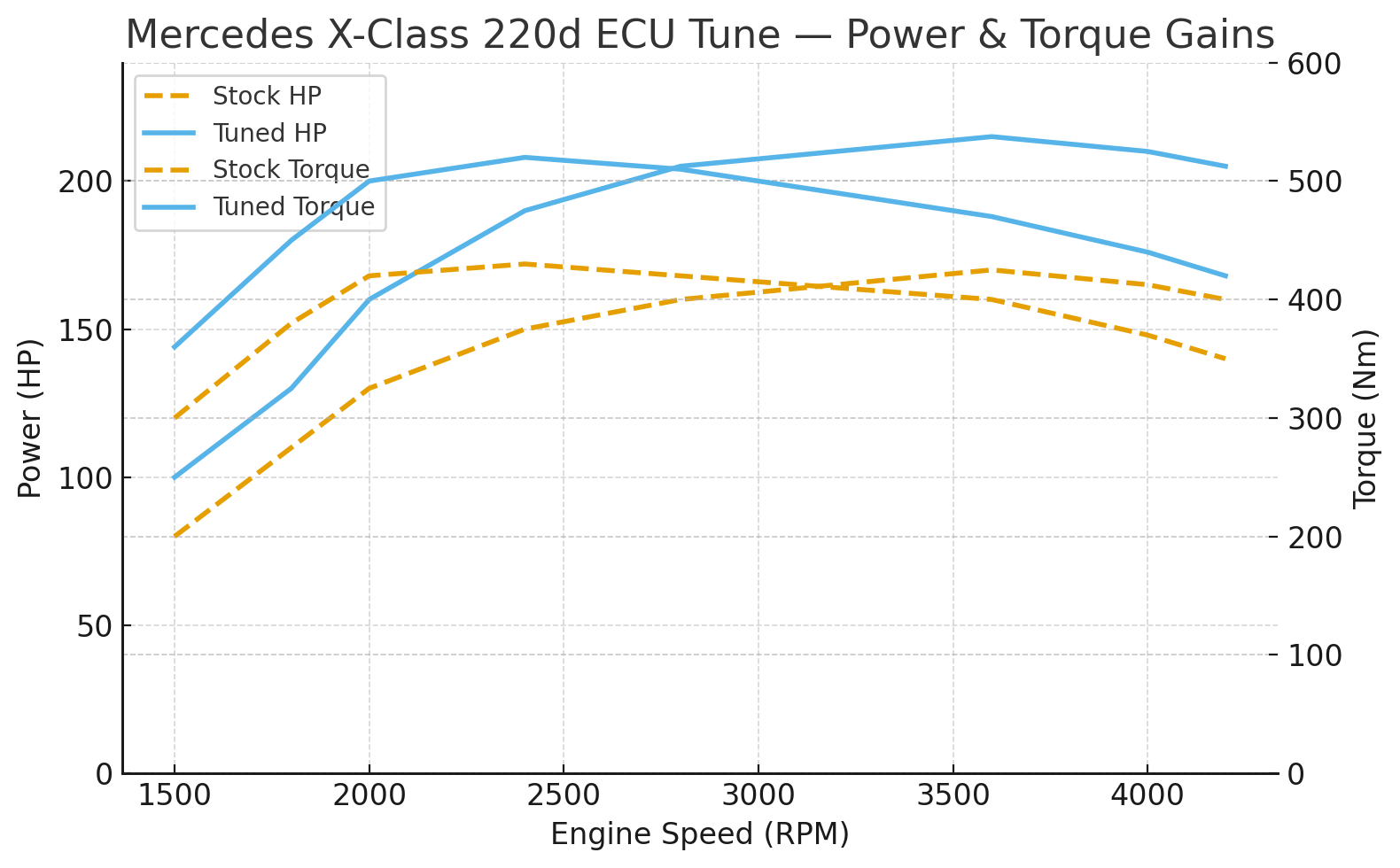 The Mercedes X-Class 220d ECU Tune Stage 1 is the biggest bang-for-your-buck upgrade — reliable, efficient, and ideal for daily driving or towing applications.