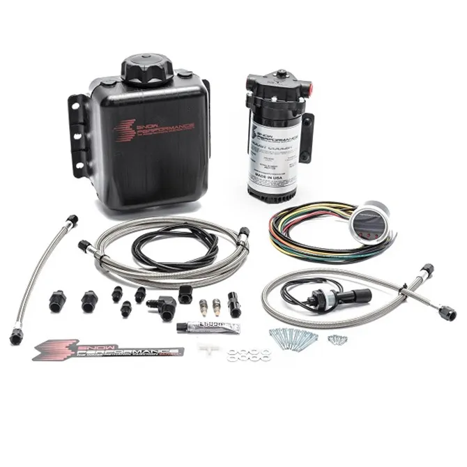 The Snow Performance Stage 2.5 Boost Cooler water-methanol injection system is designed for enthusiasts chasing more power, better detonation control, and cooler intake air temperatures. This advanced injection kit suits turbocharged or supercharged engines up to 3.5 bar of boost. With proper setup, the Stage 2.5 kit delivers gains of 10–25% over stock while protecting against knock and heat soak.